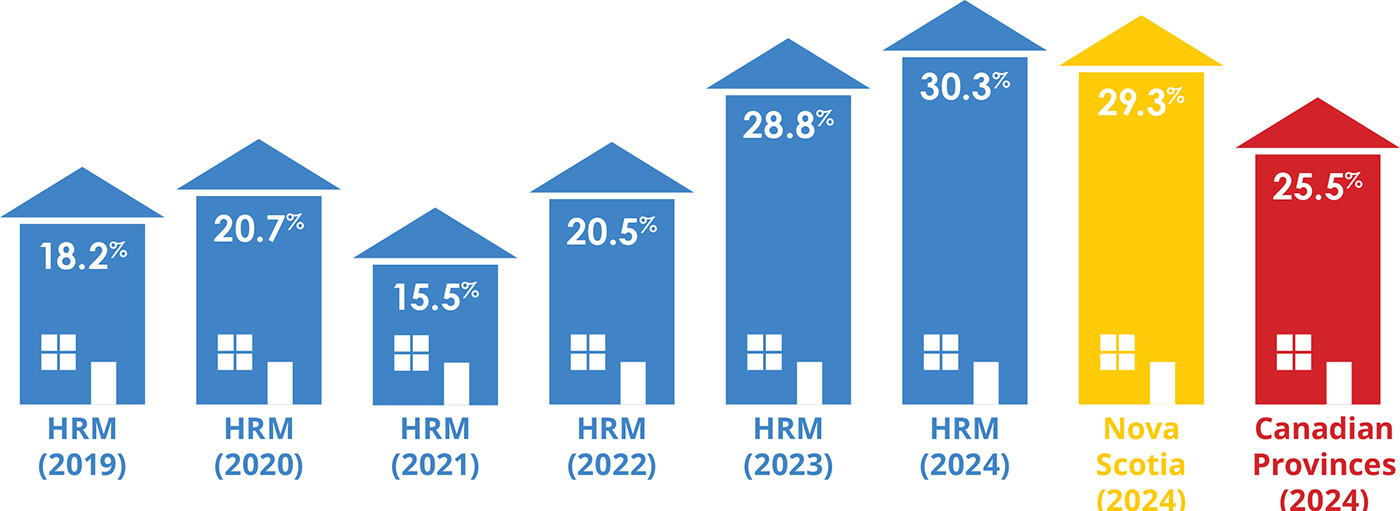 - References: Statistics Canada, Canadian Income Survey (CIS) 2018-2023. Custom Tables for Halifax Census Metropolitan Area.; PROOF Food Insecurity Policy Research. “New Data on household food insecurity in 2024.” Retrieved from: https://proof.utoronto.ca/2025/new-data-on-household-food-insecurity-in-2024/ *Note: To align with PROOF’s reporting methods and to reflect the year of CIS data collection, we’ve labeled the data using the year it was collected. CIS data on food insecurity are collected in the year following the survey reference year.